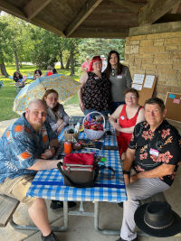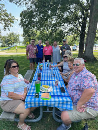 We were very lucky to have decent weather, maybe a little on the warm side. The day was spent enjoying food, drink, and sharing time with many people we haven't seen in a while. Thank you to those who brought something to share. And many thanks to those that helped clean up and take the excess food, drinks, toys, etc. at the end of the party.